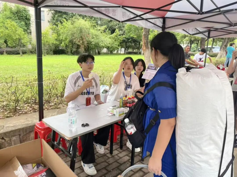 面对新生和家长的问路需求,“青年先锋岗”的志愿者们不仅清晰指明方向,不少人还直接化身“引路员”,全程陪同送至目的地。遇到对校园环境感到陌生的家长,志愿者们主动递上饮用水,热情介绍学院的办学特色、学科优势与校园文化,细致解答关于学习生活的疑问,切实缓解了家长的担忧。在志愿者们的协助下,学院和辅导员高效完成了迎新报到各项流程,为维护校园秩序注入了温暖力量。