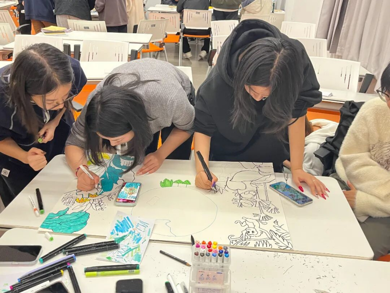 在一教105教室,学员们围绕“十五五规划”与“红色使命”主题,开展了一场富有思想内涵的绘画创作。大家从初心使命、绿色发展、家园建设、低碳环保和“一带一路”等角度出发,以画笔勾勒心中的时代画卷。
