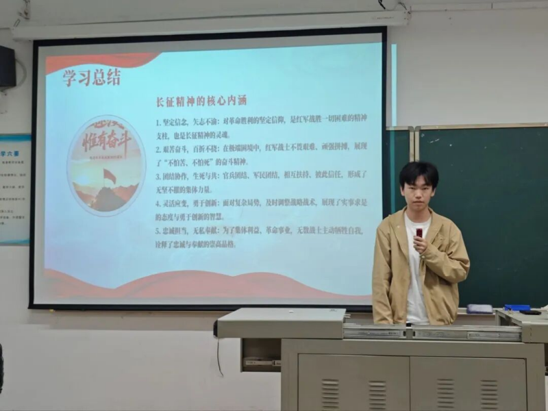 活动中,学员们两人一组,通过精心准备的PPT展示,围绕《红星照耀中国》等经典著作展开分享。有的聚焦革命先辈的坚定信仰,剖析英雄人物在危难时刻展现的精神力量;有的着眼历史细节,讲述革命征程中的感人故事;还有的结合当代青年实际,探讨红色精神在新时代的传承与践行。每组展示虽然时间有限,却凝聚了学员们对红色经典的深入思考和独到见解。