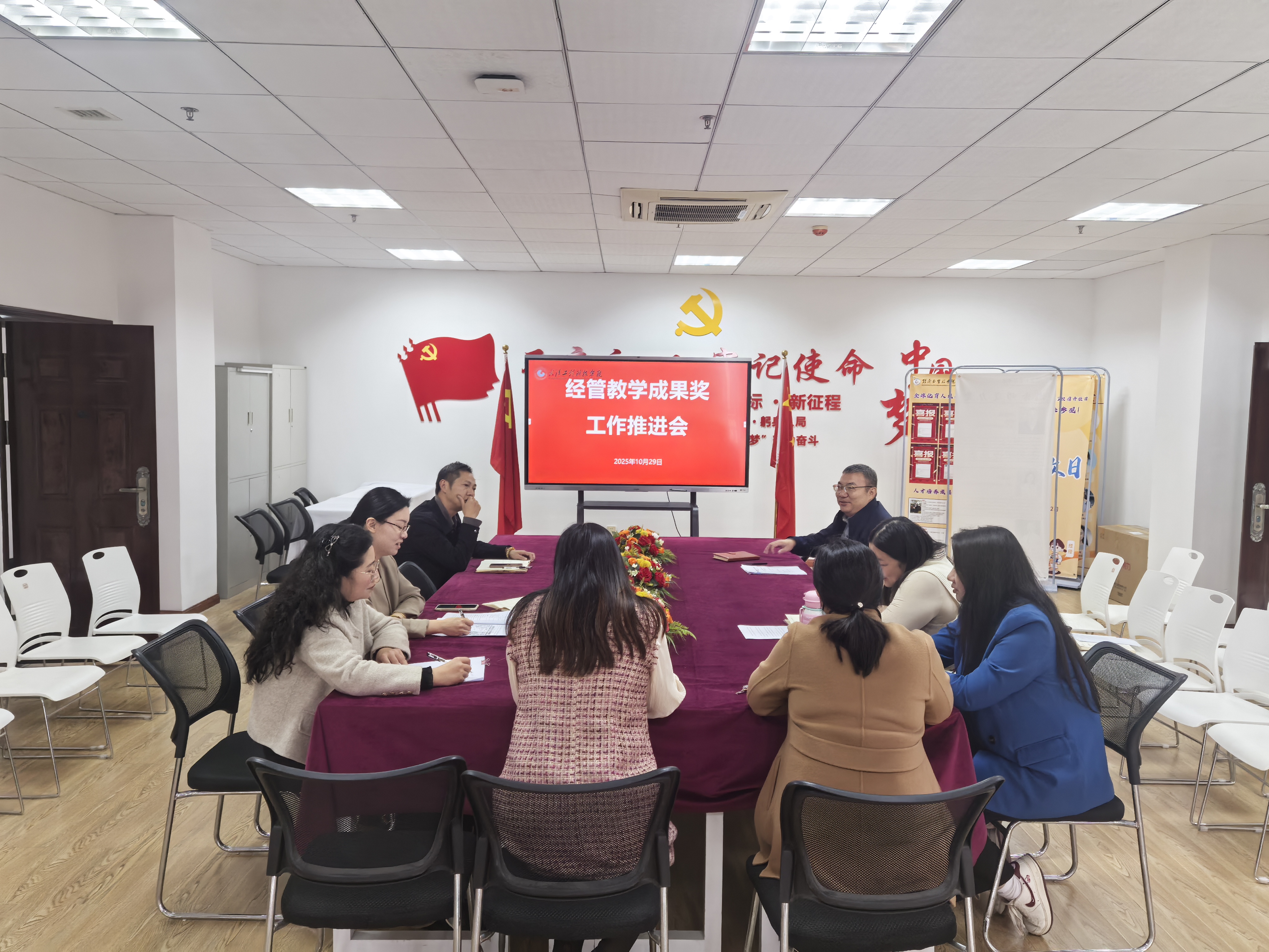 2025年10月29日13:00,经济与管理学院在综合楼807会议室召开了教学成果奖工作推进会,胡晓峰院长主持会议,涂淼副院长、各系室主任及专业负责人参加会议。