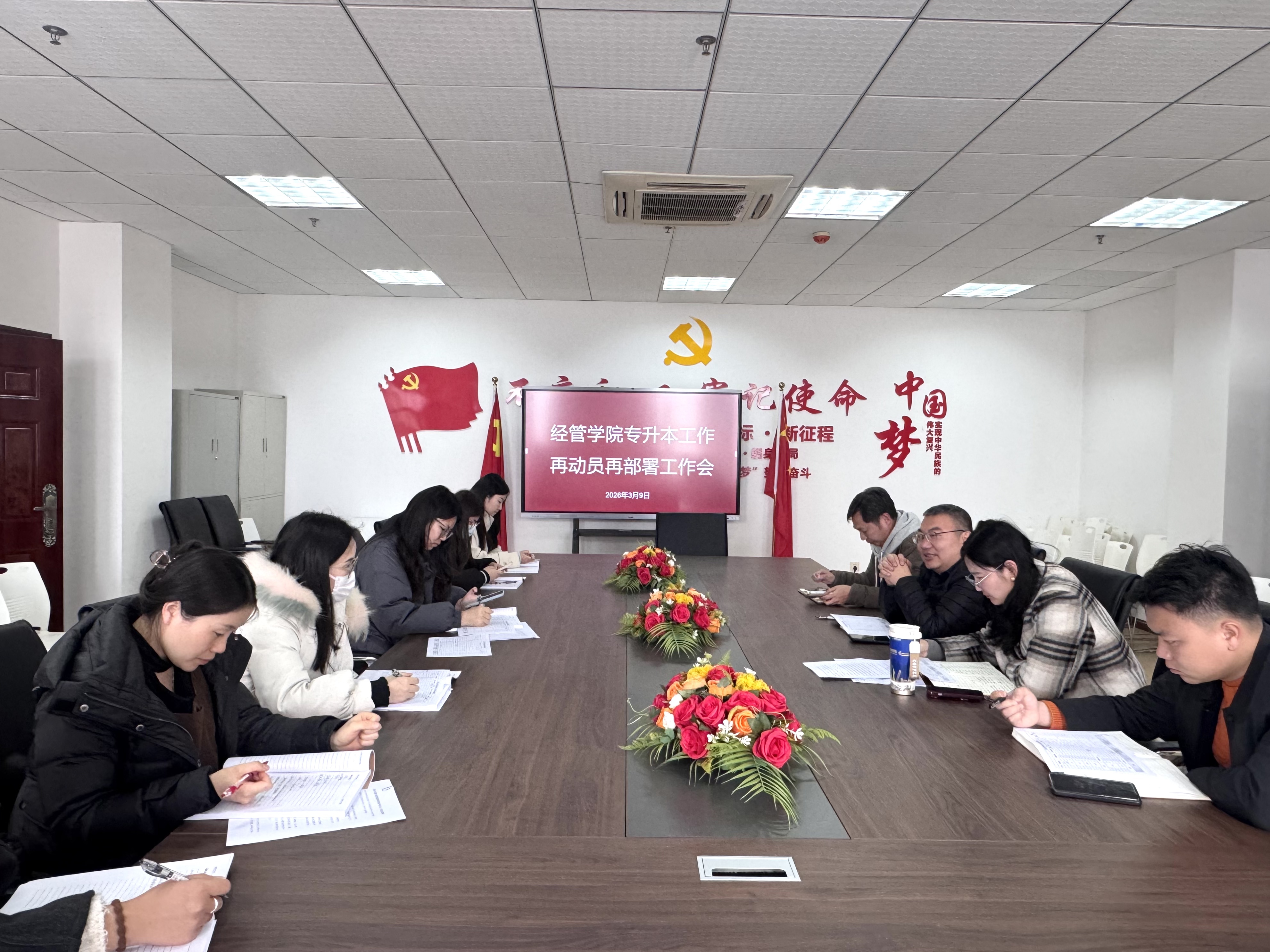 经管学院在综合楼807会议室召开了专升本工作再动员再部署工作会,要求辅导员老师紧密联系学生, 胡美玲书记就今年专升本招生工作面临的形势和问题做了简要说明。