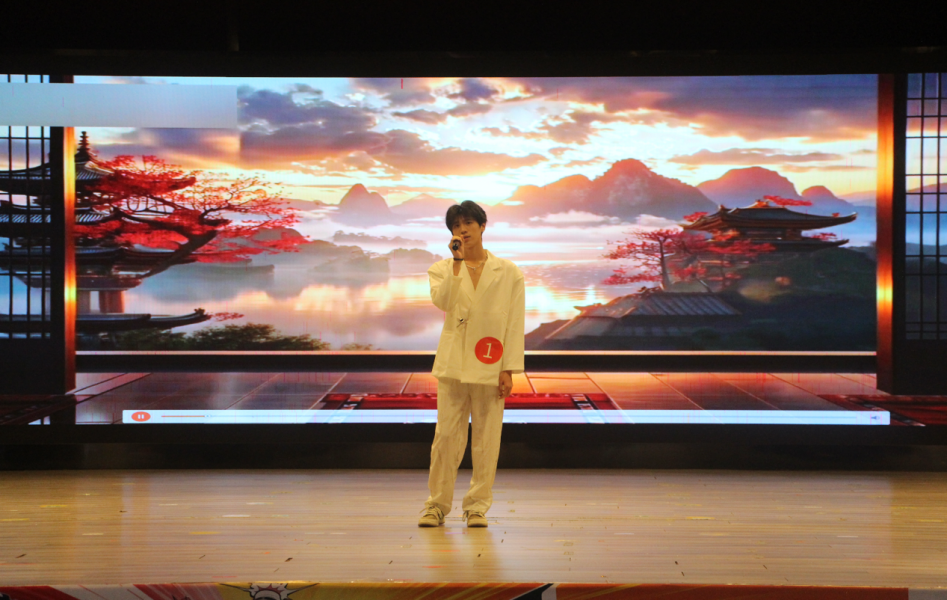 比赛环节分为两轮进行,选手们在舞台上尽情展现自己的歌唱才华。第一轮比赛1 号选手熊家杰演唱歌曲《花田错》。