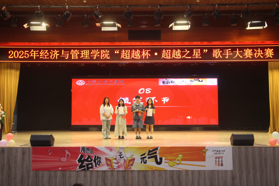 为传承五四精神,展现新时代青年的蓬勃风采,以音乐为桥梁,连接历史与现实,经济与管理学院于5月27日在三教报告厅举办了“超越杯·超越之星”歌手大赛。此次大赛旨在让青年学子在歌声中感悟家国情怀,以艺术形式诠释 “爱国、进步、民主、科学” 的精神内核。校团委红星艺术团指导老师肖玉容及各位优秀辅导员老师受邀出席本次大赛。特别鸣谢本次活动的赞助商元气森林气泡水(0糖0脂0卡)。