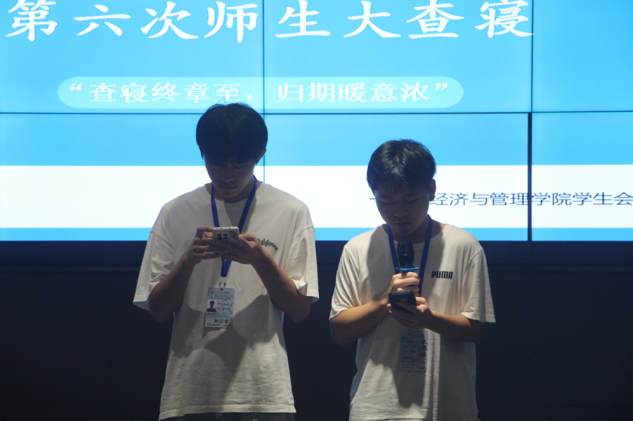 为保障学生期末离校安全,强化纪律意识,经济与管理学院针对学生离校相关事项与6月12日在一教115开展了“查寝终章至,归期暖意浓”为主题的第六次师生大查寝活动。学生生活服务部预备干事巫一帆上台发言。他复盘了上次查寝工作的情况,包括整体表现、优秀宿舍典范以及存在的问题,如部分宿舍垃圾未清、存在安全隐患等。同时,还对本次查寝的工作安排进行了清晰且有条理的介绍。