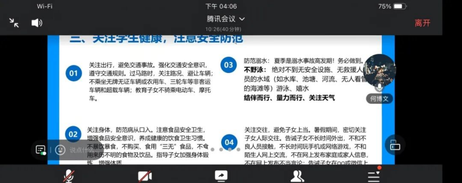 此次线上主题班会,经济与管理学院全面覆盖学生暑期生活场景,把安全意识传递到每一位学生。辅导员也将保持和学生的动态联系,全力守护学生暑期安全,筑牢校园安全防护网。