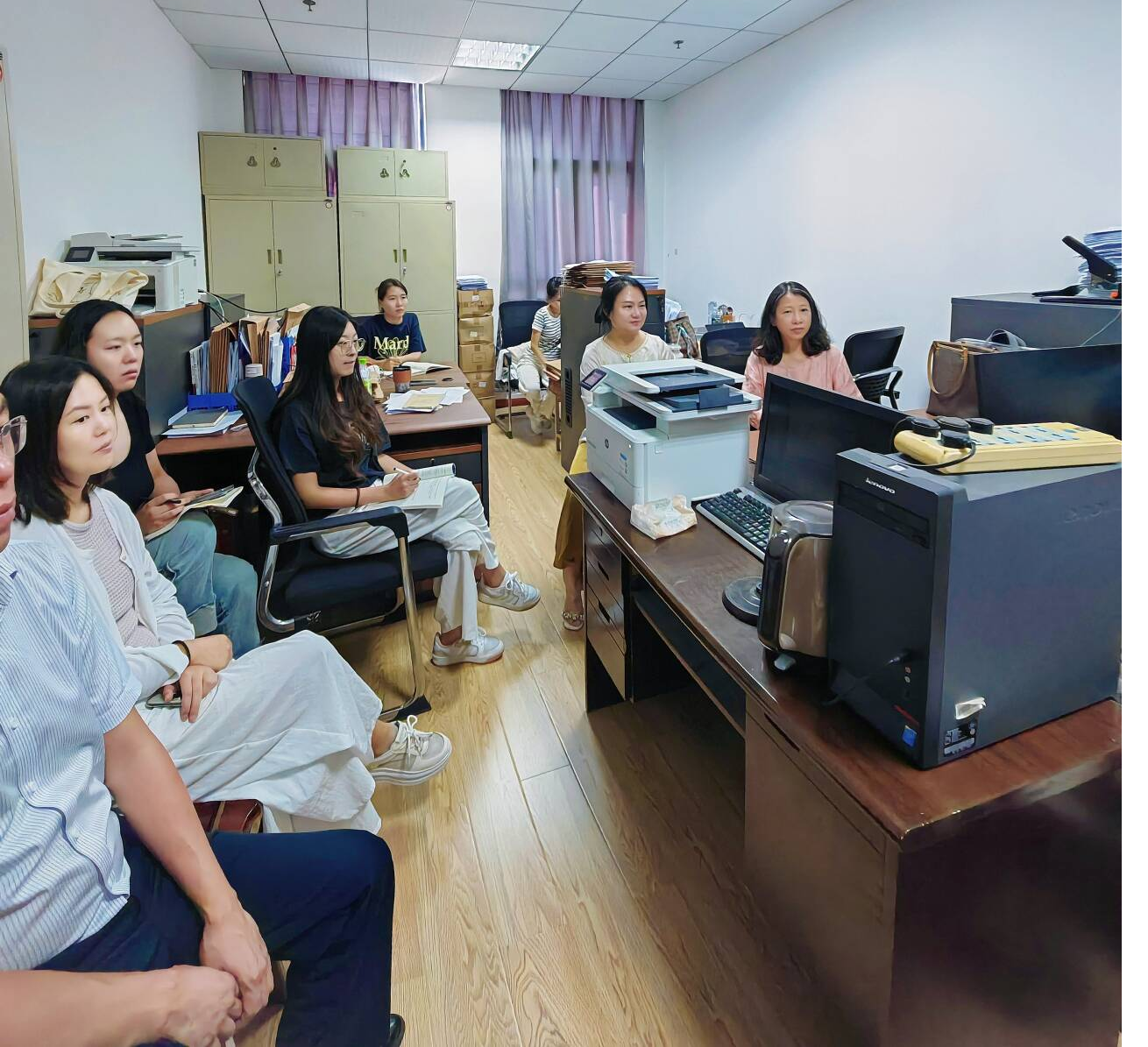 示范课结束后,系主任叶舜组织全体教师开展专题研讨。研讨会围绕“数智化转型与课程建设”“如何上好一堂课”“课程思政融入方法”等议题展开深入讨论,形成以下共识: