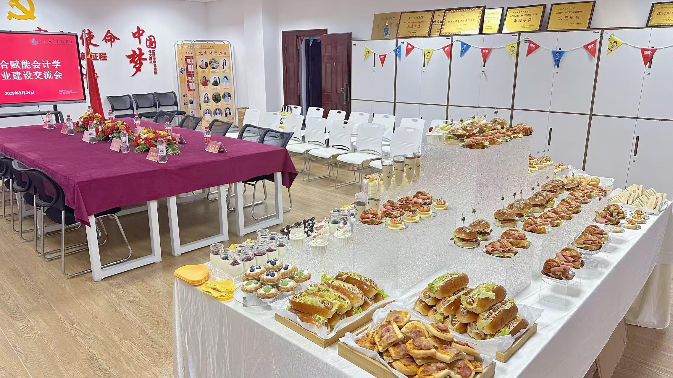 交流会后,学院特别安排了冷餐茶歇交流环节。嘉宾、教师与学生在轻松的氛围中继续深入探讨,围绕校企共建实训平台、共享行业案例资源、联合开发数字化课程等议题达成初步共识,为后续合作打下坚实基础。