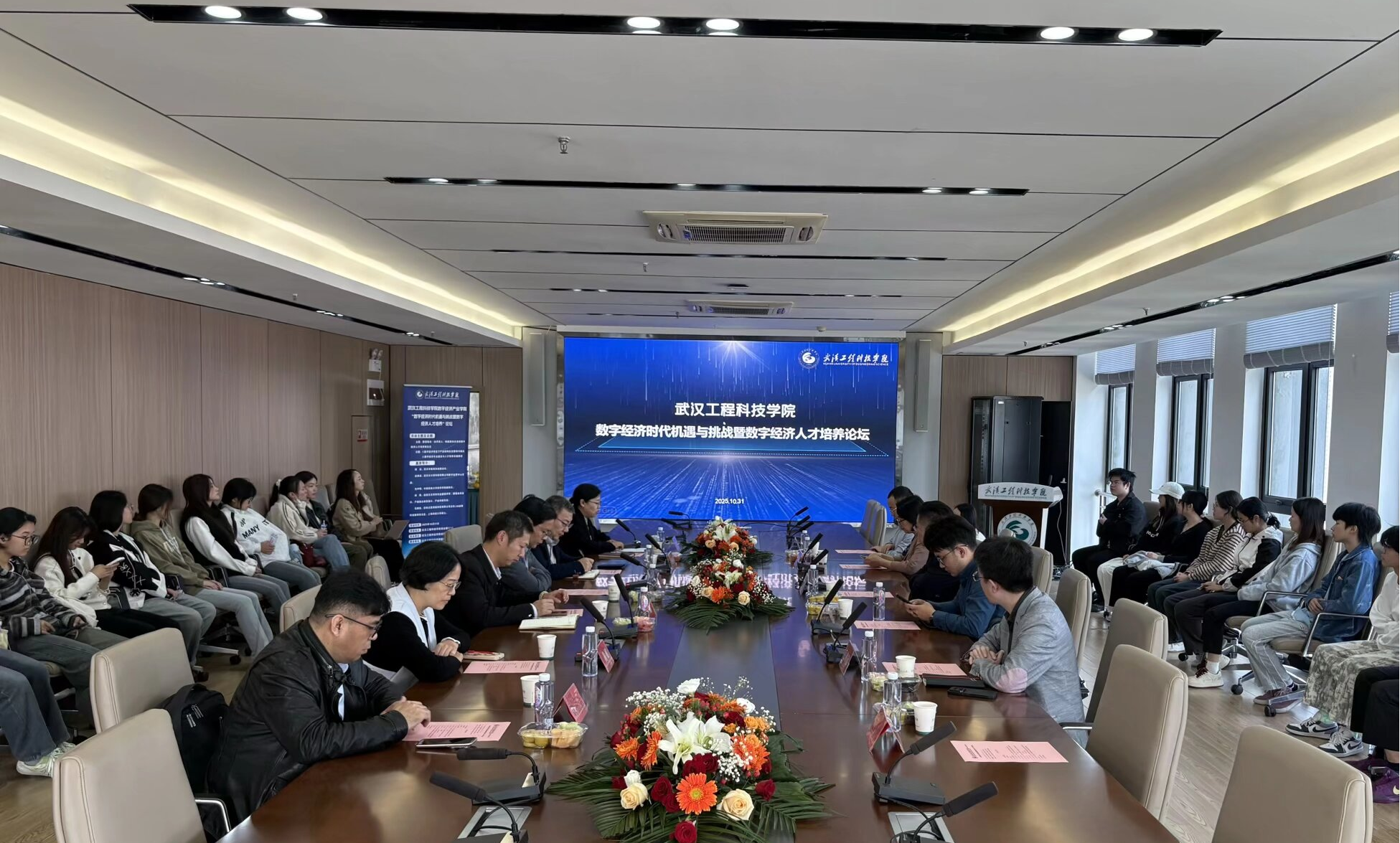 为推动数字经济学科建设,以及教学资源共建与产教融合机制创新,10月31日,由武汉工程科技学院数字经济产业学院主办的“数字经济时代机遇与挑战暨数字经济人才培养论坛”在武汉工程科技学院综合楼1210会议室顺利举行。武汉市数商协会副会长周杨、武汉云计算科技有限公司城市业务部部长/武汉网络安全技术有限公司副总经理史琳波、中南民族大学经济学院副院长毛中明、产业学院专家周博、深圳点宽网络科技有限公司合伙人毛朝选等,受邀出席活动并作精彩分享。武汉工程科技学院校长助理郭万春、经济与管理学院院长胡晓峰、副院长涂淼以及经济与管理学院各年级学生代表共同参加本次活动,活动由经济系主任洪丽君主持。