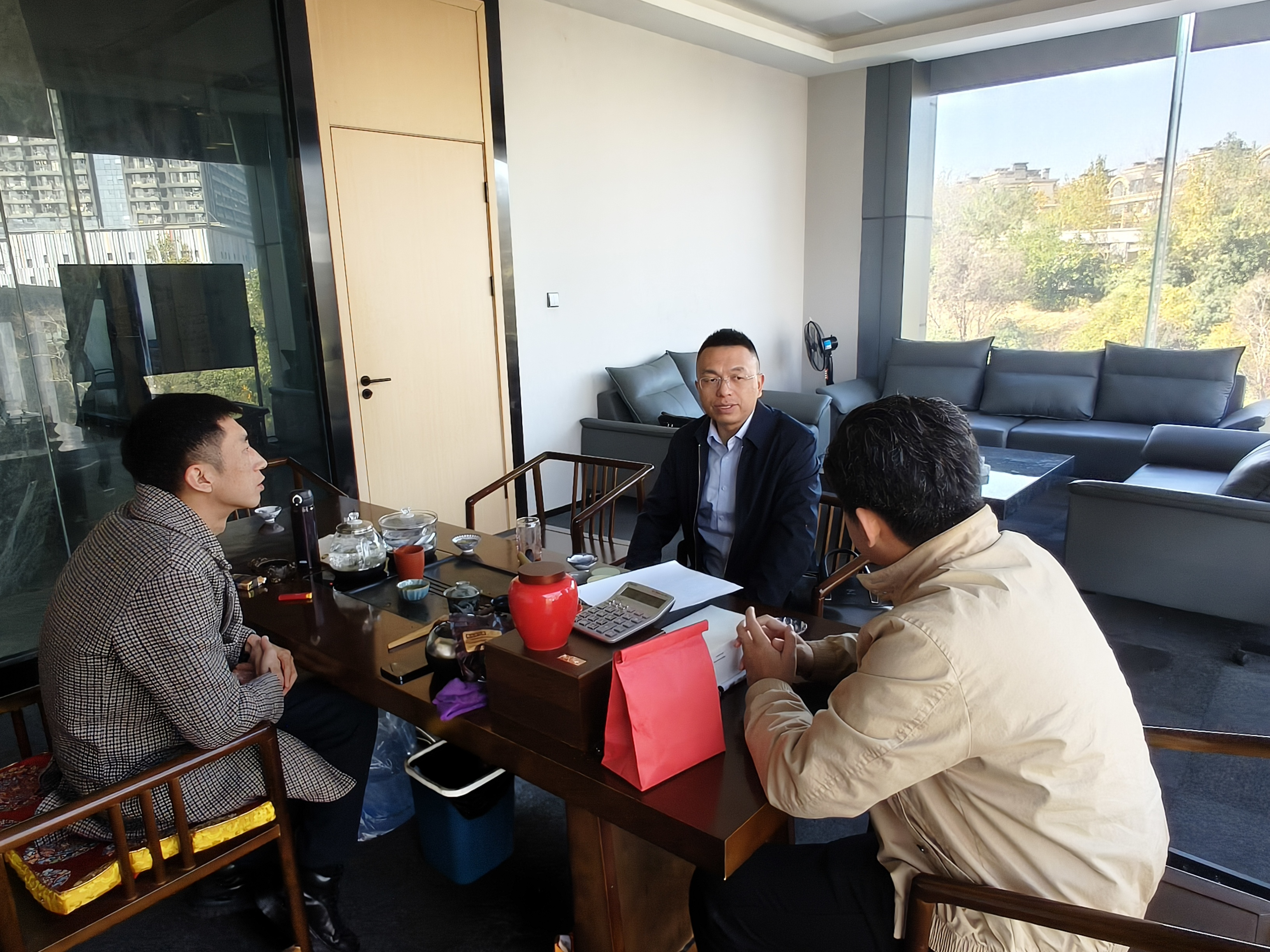 2025年11月27日下午,在武汉工程科技学院数字经济产业学院支持下,经济与管理学院石忠义老师赴京抖云(湖北)文化产业园开展访企拓岗促就业专项活动。产业园总经理陈欲温热情接待了石忠义老师一行。