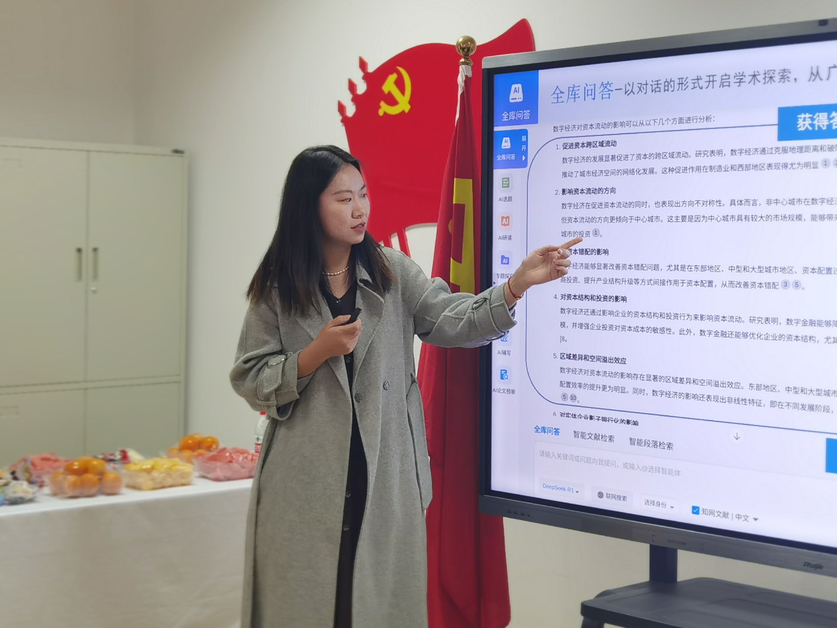 蔡梦蝶通过现场演示,展示了AI工具在文献检索与筛选、研究思路梳理、数据分析与可视化、论文撰写与修改等各个环节的具体应用。她特别强调了智能工具在识别研究空白、追踪学术前沿方面的独特价值。