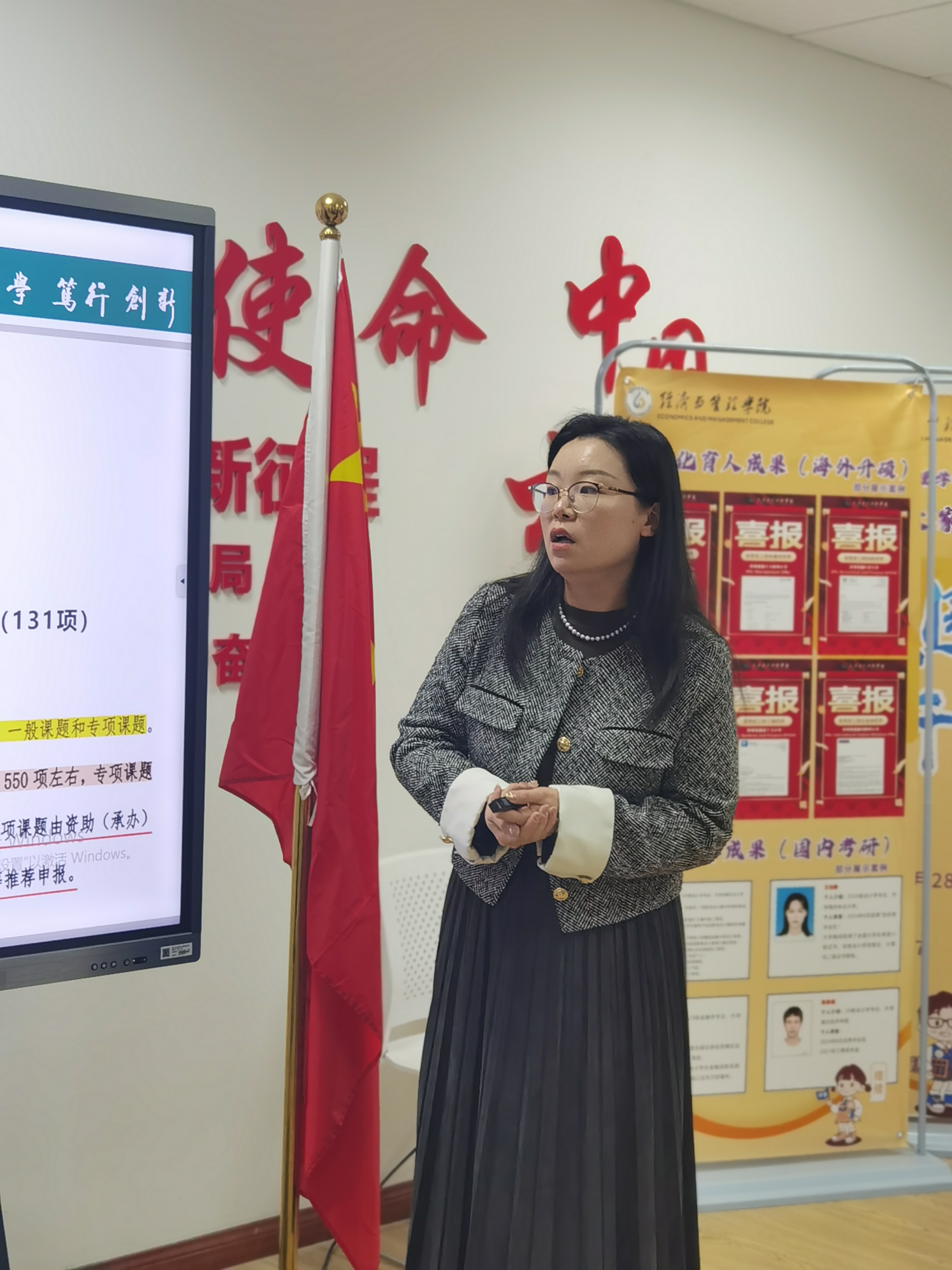 马克思主义学院副院长高莉围绕科研课题申报的格式编排问题展开了深入讨论,并调用正反面案例逐条对比讲解。她表示,格式编排远不止是形式要求,它反映的是研究者的专业素养和学术态度。