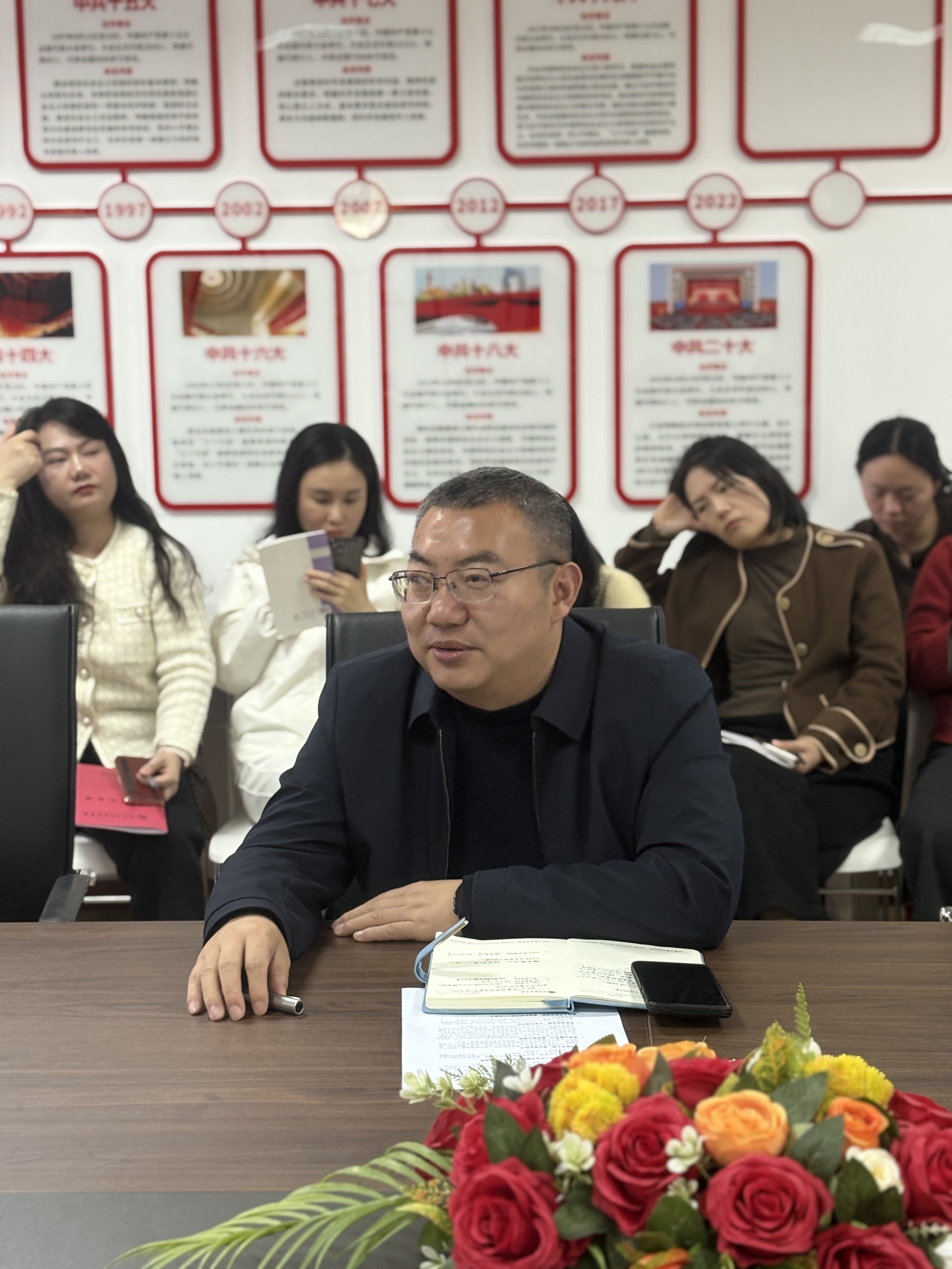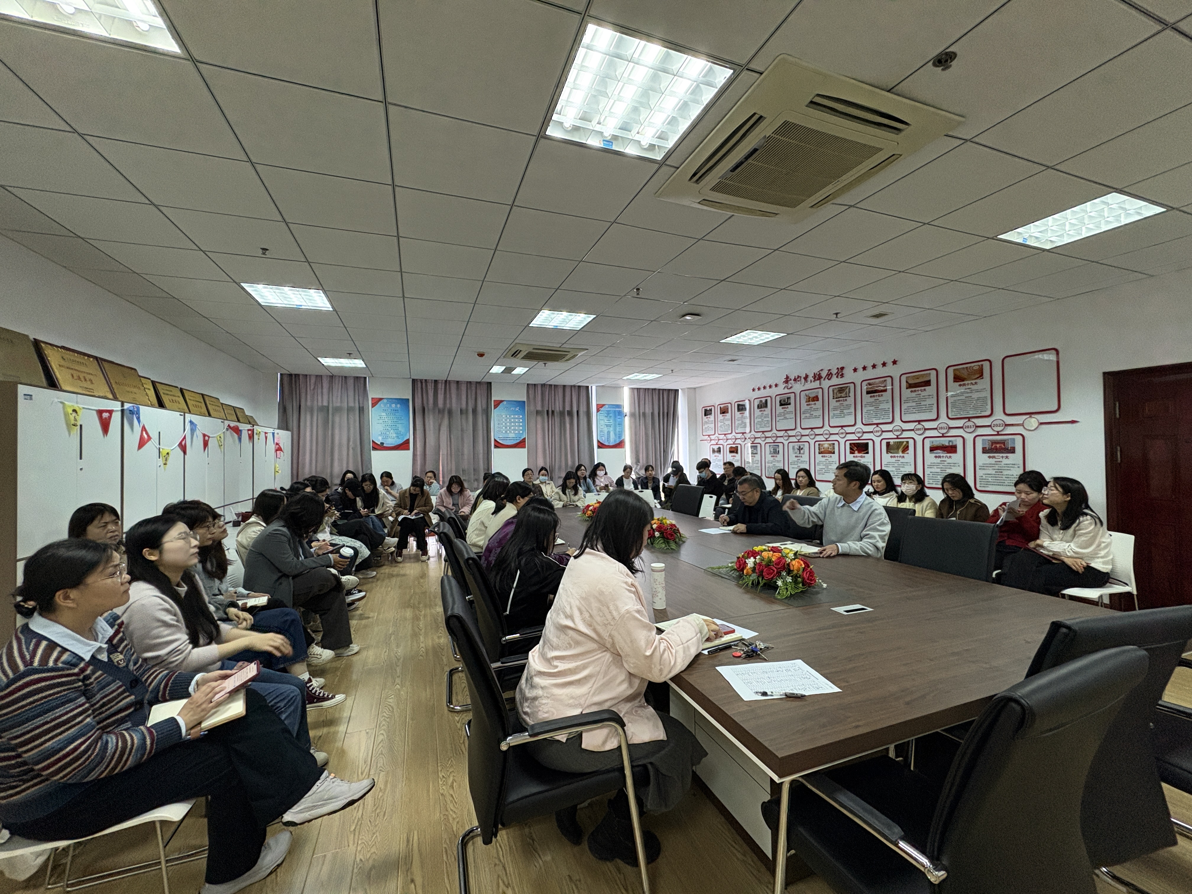 2026年4月1日14:00,经管学院在综合楼807会议室召开了全体教职工大会。胡晓峰院长主持会议,全体教职工参加会议。
